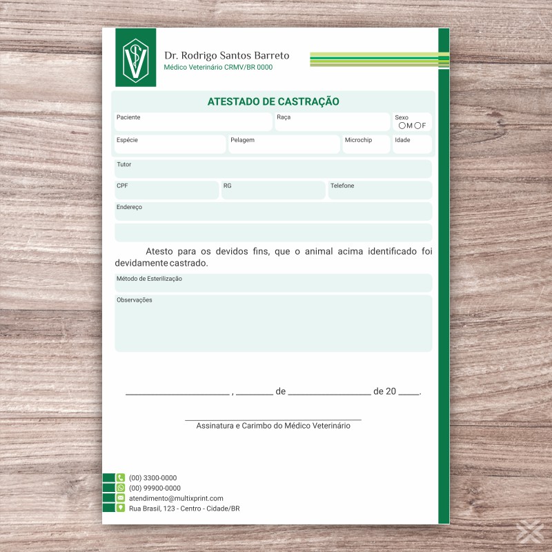 Atestado de Castração Veterinário 3001