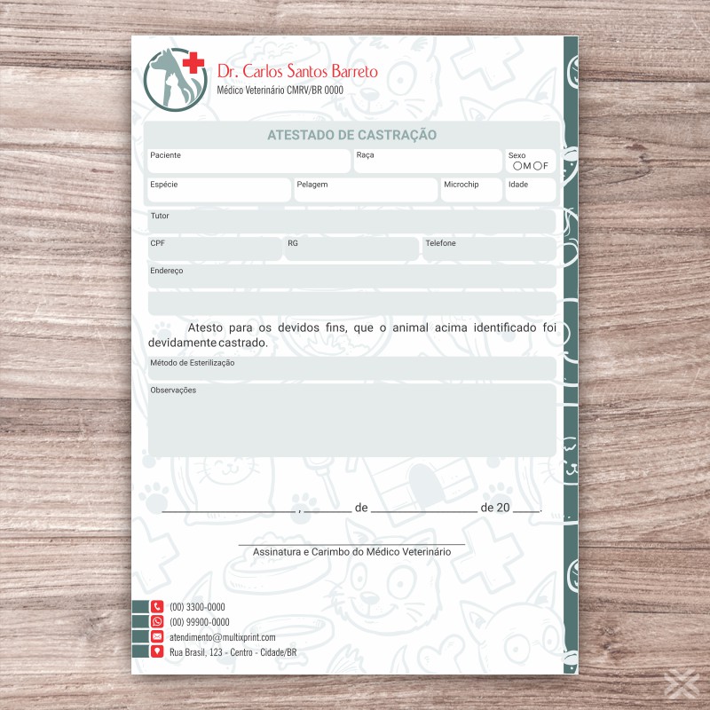 Atestado de Castração Veterinário 3022
