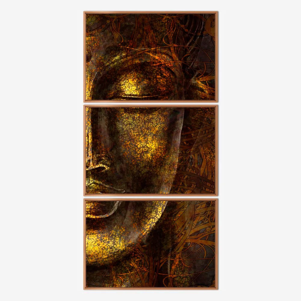 Quadro Buda Tons Ouro kit três telas