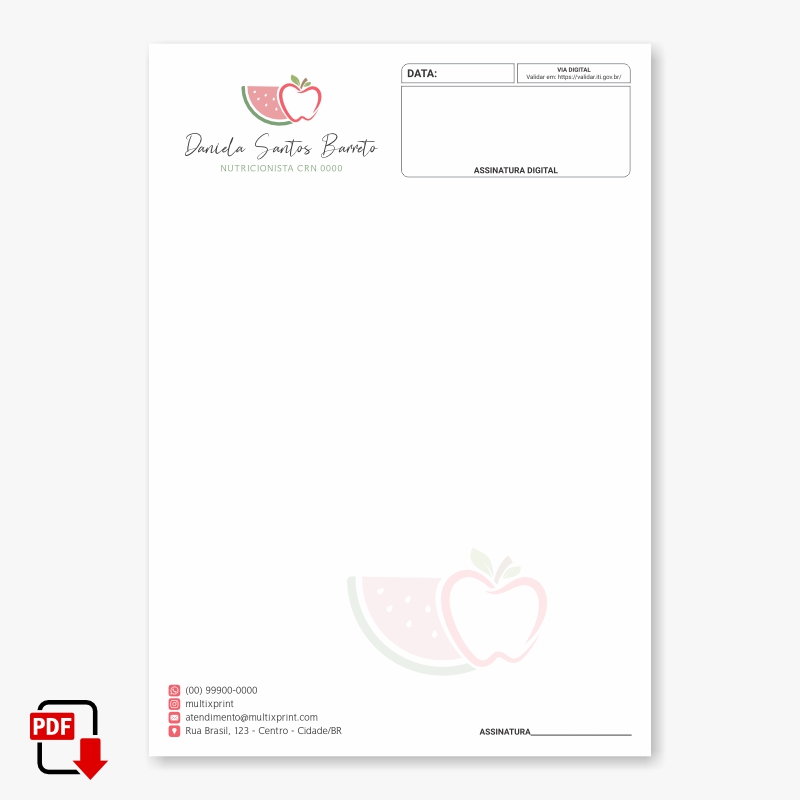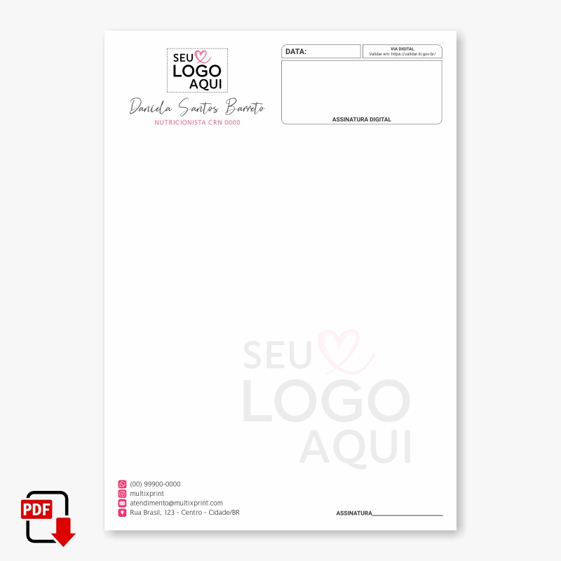 Informe os dados para personalização: Nome, conselho, telefone, e-mail, endereço e o que mais precisar;